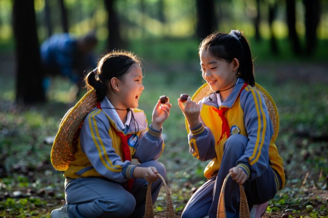 山东高密:山楂树下欢乐多 10月23日,正值霜降节气,校园农场山楂红,山东省高密市金苹果幼儿园的孩子们在老师带领下,来到校园山楂树下,了解山楂果实的形状、颜色,摘山楂、品山楂,体验劳动的快乐和收获的喜悦。