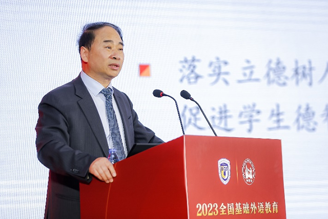 王定华作题为“以中国式现代化理念指引我国基础外语教育改革与发展”的主旨报告。他指出,基于中国式现代化的基本特色,我国基础外语教育改革与发展的方向应该从以下几方面入手:一是坚守初心,加强党对教育事业的全面领导,开创国家外语基础教育事业发展的新局面。二是勇担使命,落实立德树人的根本任务,通过推进素质教育,促进学生德智体美劳全面发展。三是力求突破,拓展“大思政课”育人格局,将课堂教育与社会实践相统一。四是强化驱动,促进教育公平与质量提高,保证基础外语教育改革发展的优质均衡。五是积蓄动能,提高人才自主培养质量,加强人才发展机制改革、加强教材建设和管理、加强中小学阅读教育。六是争创一流,打造高素质教师队伍,加强教师教育体系建设,实施落实《新时代基础教育强师计划》。七是加速变革,推进教育数字化战略行动,改进教育教学,降低学生负荷,力争全面发展。八是开创新局,扩大基础教育领域对外开放,与世界分享中国基础教育好的做法和经验。