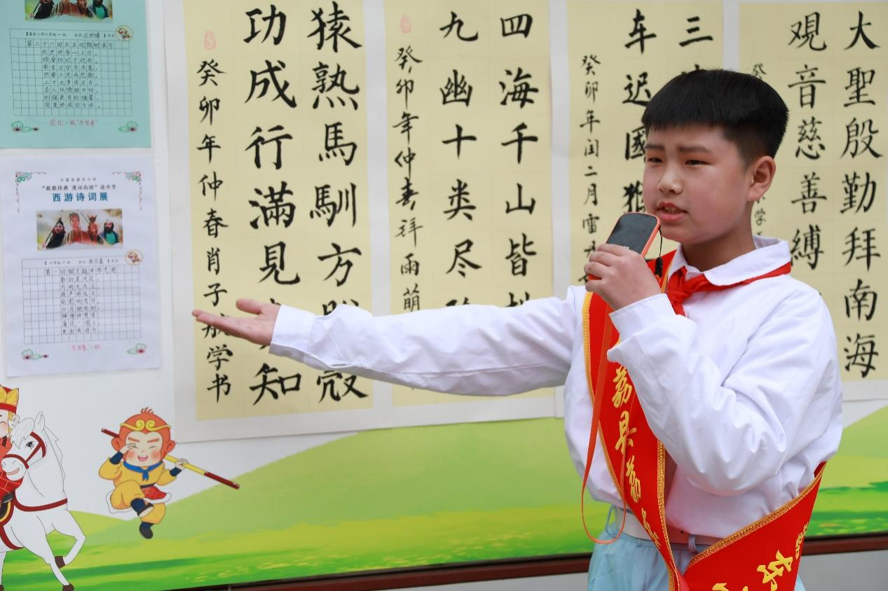 学校的“小小讲解员”介绍“巧手分豆”争章活动
