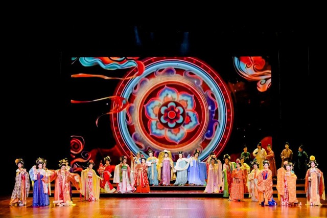在汉服展演环节,由西安工程大学策划编导的“金蚕铭:丝路织梦”诗画汉服国风大秀上演,演出以“汉风·凿空之旅”“唐韵·交融盛世”“宋韵·茶香悠扬”“金蚕故乡·上元安康”4个篇章,生动展示了入围大赛决赛的汉服设计佳作。整场节目融合舞蹈、诗歌朗诵与情景演绎等多种艺术形式,将秦汉的雄浑气象、盛唐的繁华风貌、宋明的雅韵情致一一呈现,带领观众穿越时空,深切感受中华传统服饰文化沉淀千年的深厚底蕴与美学追求。