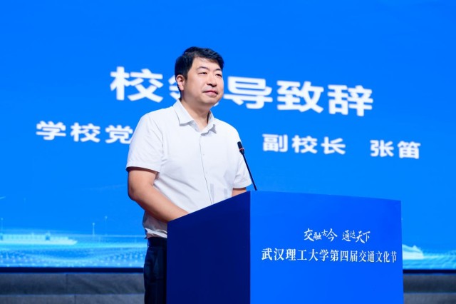 武汉理工大学副校长张笛在致辞中,回顾了学校127载办学历程中与国家交通事业的深厚联结。他表示,学校始终以国家发展战略为导向,构建“水陆并举+管道运输”的大交通学科群,从助力“蛟龙号”探海到参与国产大型邮轮研发,从服务港珠澳大桥建设到连续获评“交通强国建设试点成效突出任务”,为交通强国建设输送了大批人才。他强调,举办交通文化节是对学校办学特色的传承,更是对交通精神的弘扬,期待学生在活动中读懂交通、热爱交通,将个人理想融入交通强国、海洋强国、航运强国的时代使命。