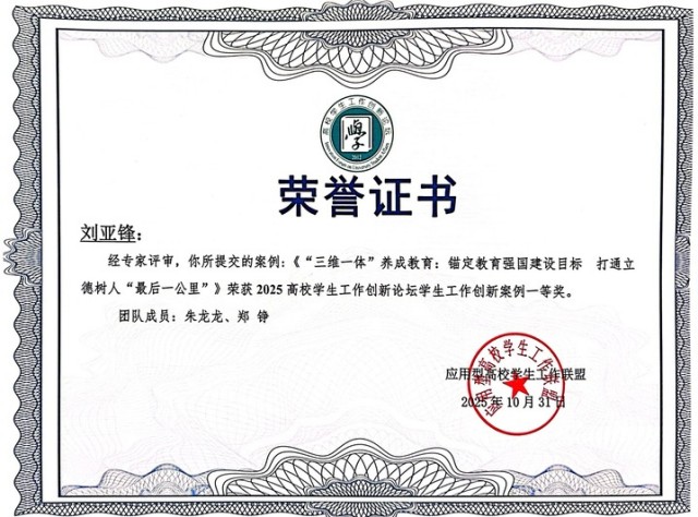 10月,陕西国际商贸学院申报的《“三维一体”养成教育:锚定教育强国目标,打通立德树人“最后一公里”》,荣获2025高校学生工作创新论坛学生工作创新案例一等奖。荣誉背后是学校学生工作系统性创新与长期实践积累的结果,标志着学校“学生养成工程”建设进入了新阶段、迈上了新台阶。