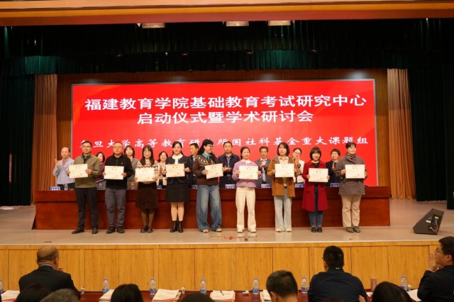 启动仪式上,复旦大学高等教育研究所授予考试研究中心“国家社科基金教育学重大项目‘拔尖创新人才贯通式培养研究’协作研究单位”牌匾。福建教育学院党委委员、副院长张志刚等嘉宾,为学术顾问、基地校及研究员授牌并颁发证书。
