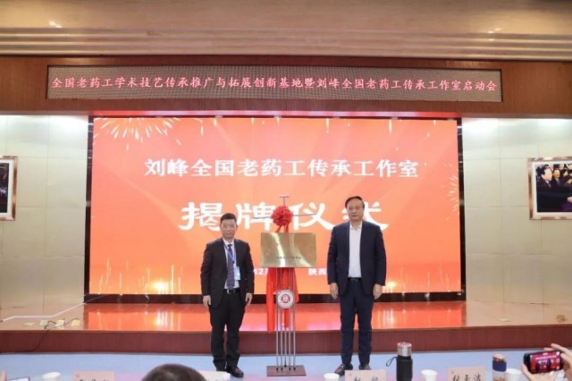 赵超与刘峰共同为“刘峰全国老药工传承工作室”揭牌