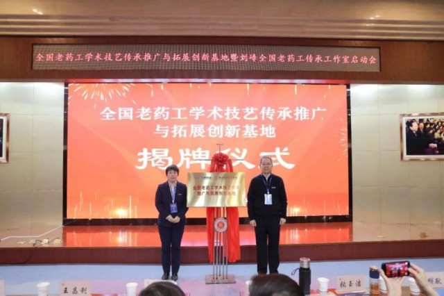 会上,张富林宣读国家中医药管理局关于“刘峰全国老药工传承工作室”立项的通知;赵超与刘峰共同为“刘峰全国老药工传承工作室”揭牌,贾明远与药学院负责人为“全国老药工学术技艺传承推广与拓展创新基地”揭牌,将企业产业需求与高校人才培养、科研创新紧密衔接。仪式现场同步举行聘书颁发环节,赵超为王昌利、胡本祥、曹公义3位“全国老药工”颁发“基地客座聘书”;贾明远为马存德、李雪两位专家颁发“基地特聘指导专家”聘书。