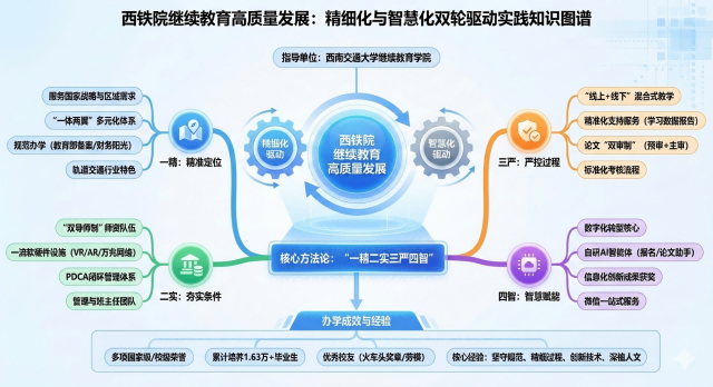 西铁院继续教育学院构建系统性、智能化、人文关怀的服务体系,深度融合高校资源与行业需求,凝练出“坚守规范、精细过程、创新技术、深植人文”的核心经验。未来,学院将深化智慧助学,拓展产教融合,为继续教育高质量发展注入新动能。