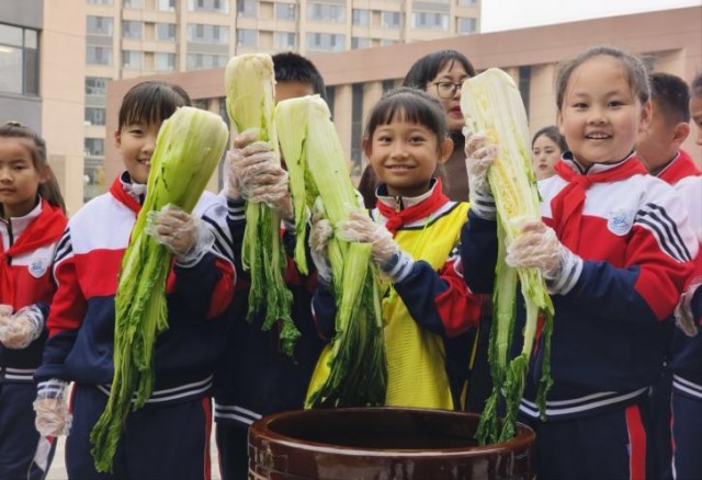 东胜区第一小学铁西校区“传承民俗腌酸菜”活动