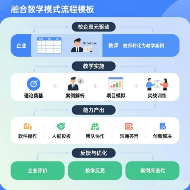 学校锚定激发兴趣、主动思考、提升能力、培养创新的目标,精准破解传统课程教学中学生被动接受、创新思维不足的现实难点,秉持以学生为中心的教育理念,创新构建“四阶六环”闭环教学模式。通过以结构化案例为核心引擎,以多元教学模式为重要抓手,驱动课堂教学环节闭环运行,实现知识建构与能力提升的育人目标,为同行院校探索案例式教学模式提供了可复制、可推广的实践经验。依托“四阶”(个人学习、小组研究、课堂讨论、总结讲评)和“六环”(中心、媒介、起点、手段、参与、实践),学校系统搭建出一条“知识内化—技能提升—思维升华—创新产出”的能力生成路径,有效锻炼学生系统掌握理论、灵活运用知识和勇于开拓创新的综合实践能力。