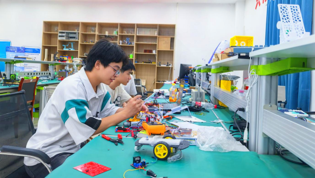 这些硬核设施共同构成了贴近产业实际的工程实践环境,让学生在校期间就能触摸产业前沿。校长陈治亚这样概括学校的实践育人理念:“我们的目标是让学生在课堂上触摸科技前沿,在竞赛中沉迷创新实践,在产业里扎根专业沃土。”