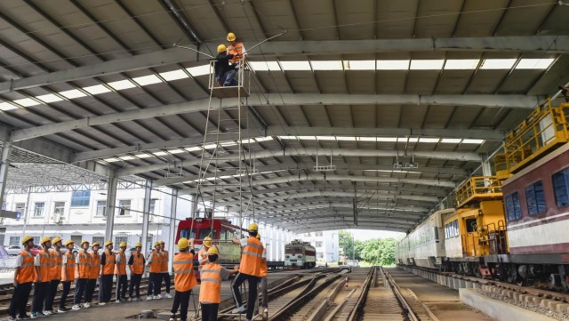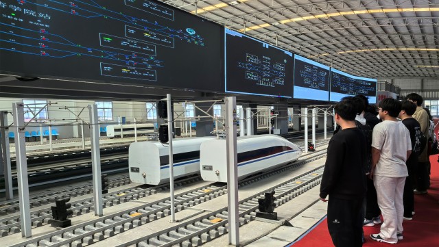 尤为引人注目的是,学校聚力特色硬核实训平台建设,投入近1亿元高标准打造铁道实训基地、轨道交通综合实训两大仿真实训平台。平台配备2.5公里电气化铁路、DJF2 “先锋号”动车组、SS3型电力机车、轨道车及接触网作业车等实景铁路装备,搭载CRH380A动车组模型、地铁列车模型及完整的轨道、信号、供电、通信配套系统,并建成功能完备的电气化铁路体系,集列车调度、行车组织、信号控制、运营管理于一体,高度还原真实轨道交通运营全场景,助力学生在全真工程环境中锤炼硬核专业技能。2024年,学校交通运输卓越工程师培养(实践)基地成功入选“湖南省卓越工程师培养(实践)基地”。同时,学校投入4800余万元建成工程实践创新中心,构建“课、训、赛、创”一体化人才培养模式,集实践教学、工程训练、科研创新、产教融合服务于一体,全方位赋能学生实践能力与创新素养双提升。