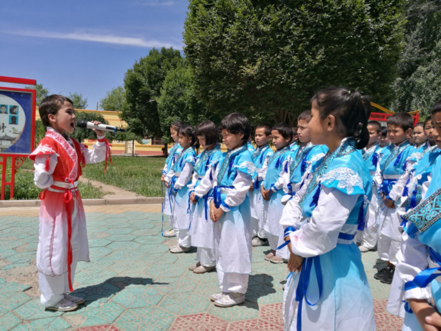 新疆阿克苏地区拜城县在全县推行国学教育,提倡早读、午读和暮诵,用趣学、乐学的形式,让孩子们走近经典,让乡村响起经典诵读的声音。