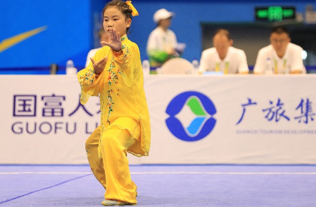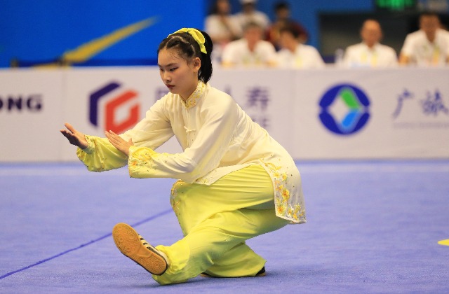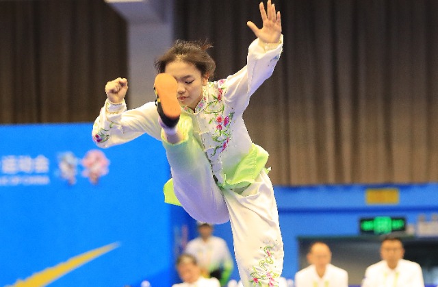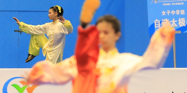11月6日,首届学青会(校园组)武术套路中学女子组自选太极拳项目决赛中。张学军 摄