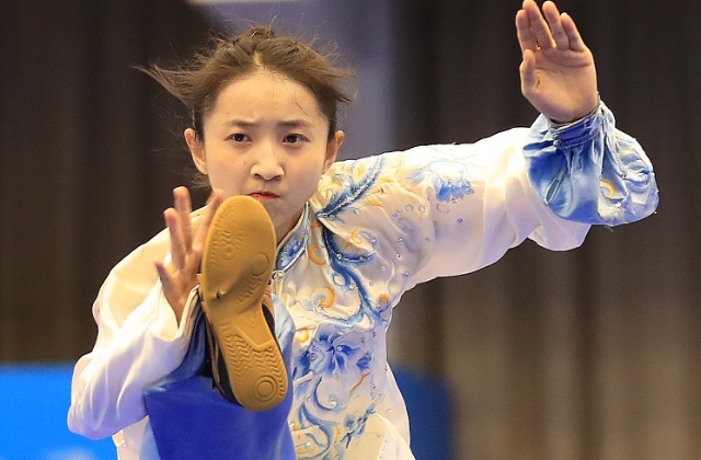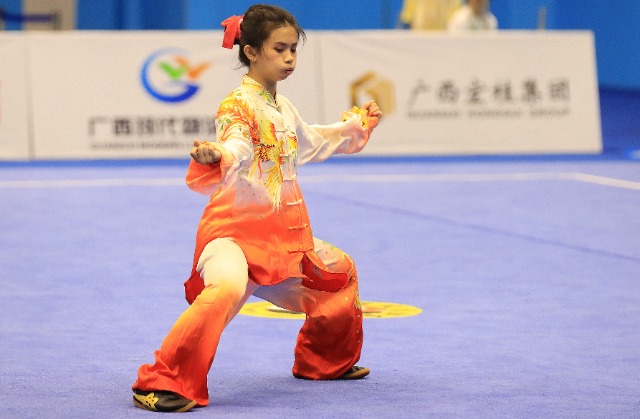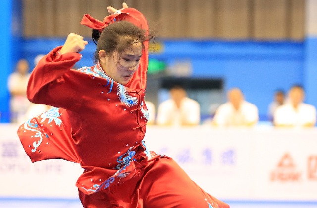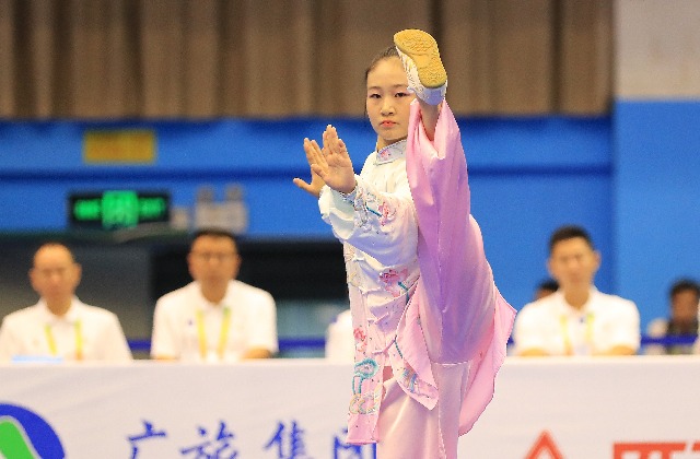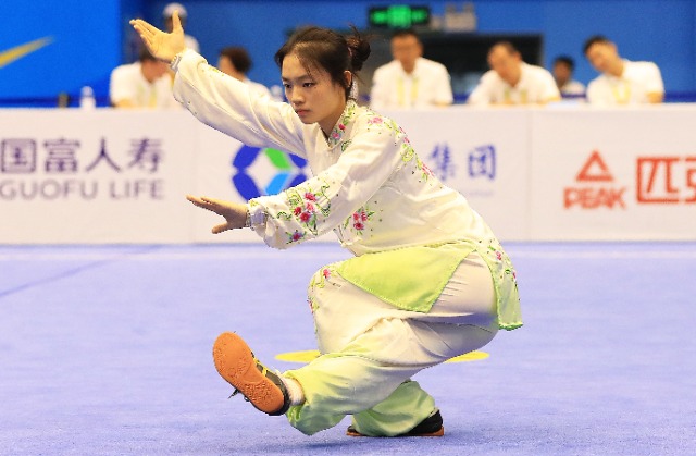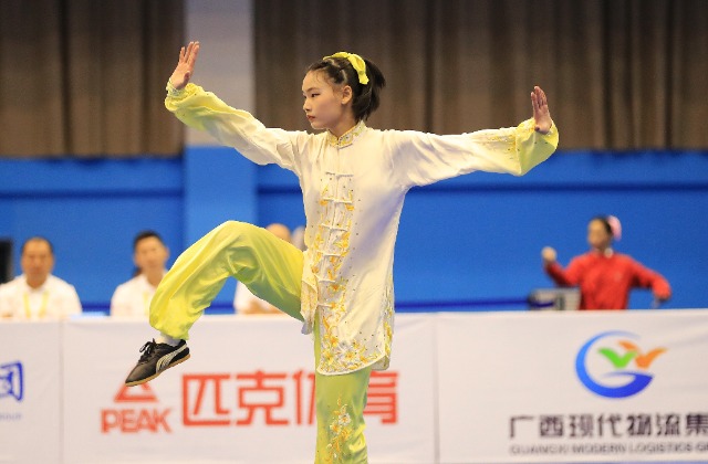11月6日,首届学青会(校园组)武术套路中学女子组自选太极拳项目决赛中。张学军摄