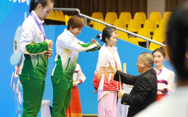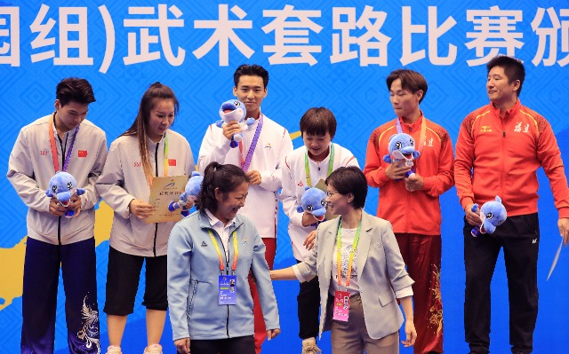 11月6日,首届学青会(校园组)武术套路比赛颁奖仪式。张学军摄