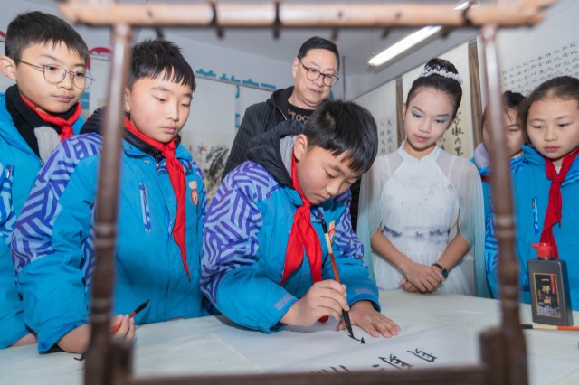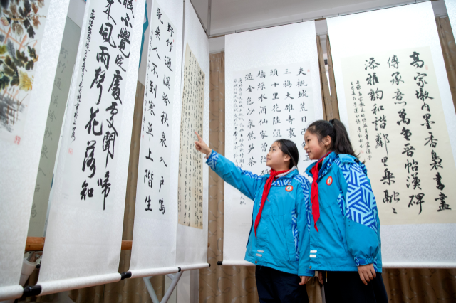 12月24日,浙江省湖州市长兴县洪桥小学开展“鸿鹄志”校园文化艺术节展示活动,学生通过逛展览书画展、体验书法等方式,提升学生汉字书画水平,感受中华民族传统文化魅力。中国教育报-中国教育新闻网通讯员 王徐超 摄