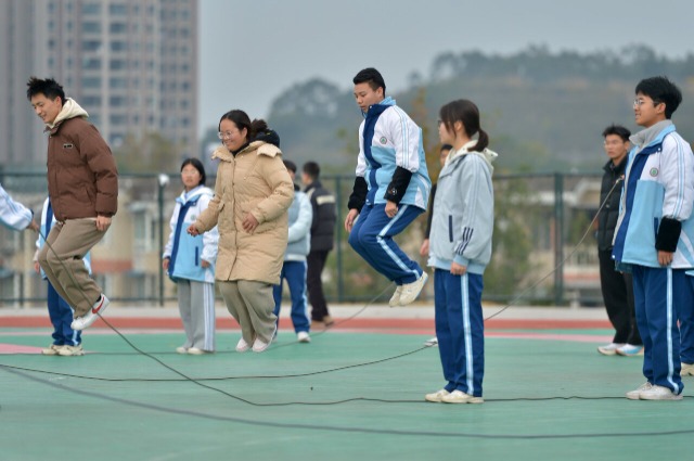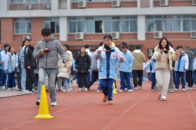 12月23日,四川省内江市第三中学组织开展形式多样的高三年级趣味减压运动会,帮助高三学生放松身心,释放压力,以平和、乐观的心态从容应对学习生活。中国教育报-中国教育新闻网通讯员 兰自涛 罗佳 摄