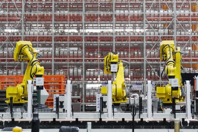 2025年2月26日,哈尔滨电机厂有限责任公司线圈分厂智能制造车间的定子线圈智能化制造设备在进行生产作业。新华社记者 王松 摄