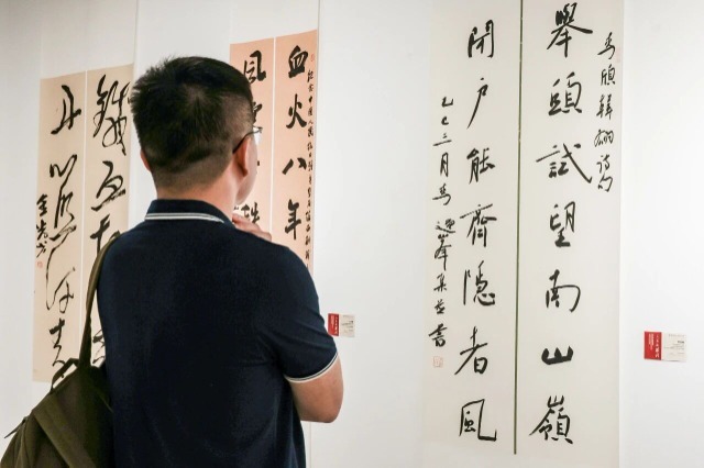 “人民的胜利:纪念中国人民抗日战争暨世界反法西斯战争胜利80周年全国教师书法作品展”开幕。中国教育报-中国教育新闻网记者 单艺伟 摄