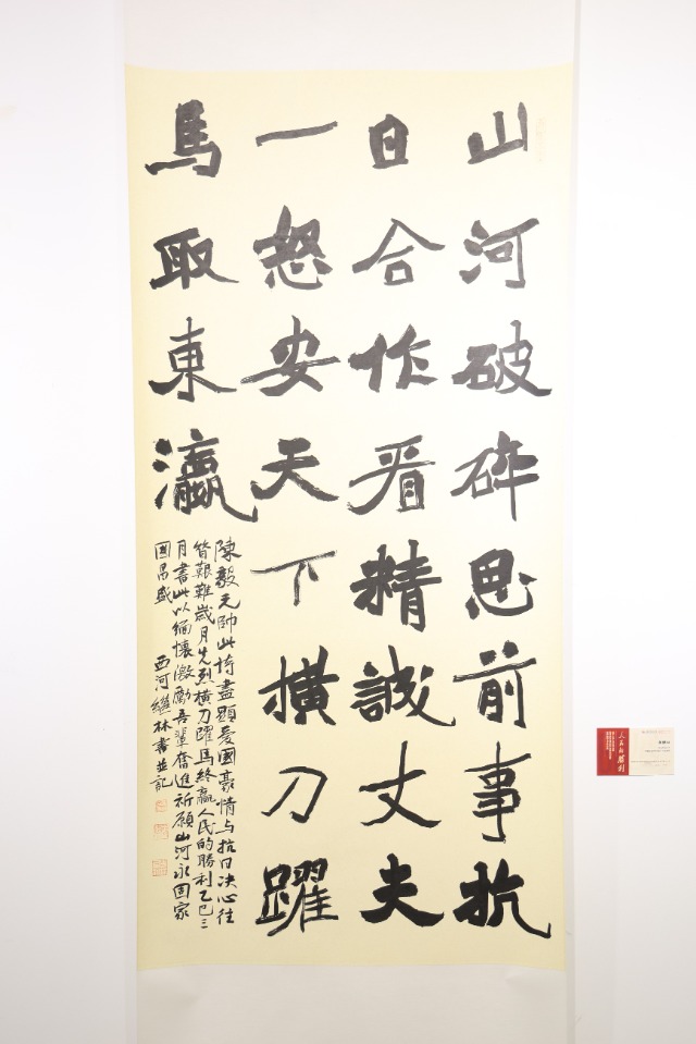 本次书法展以“铭记”为起点、“奋进”为归旨,汇集由教育界著名书法家、高校书法专业教师及中小学一线教师创作的近300幅书法作品,深切缅怀为国家和民族捐躯的革命先烈,深情传颂伟大的抗战精神。展览还特别展出了联合国前秘书长潘基文先生于2012年在任期间,在周斌指导下书写的首幅书法作品《和平》,充分体现了中国人民和世界人民一道向往和平、倡导人类命运共同体的理念。展览展出时间将从9月6日持续到9月19日。