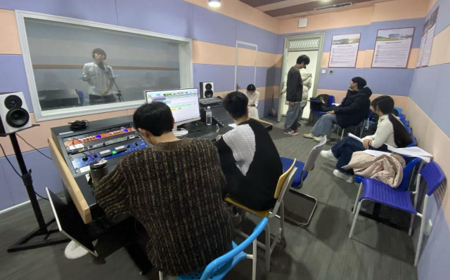 传媒学院师生为文旅演出音效进行艺术化加工。学校供图