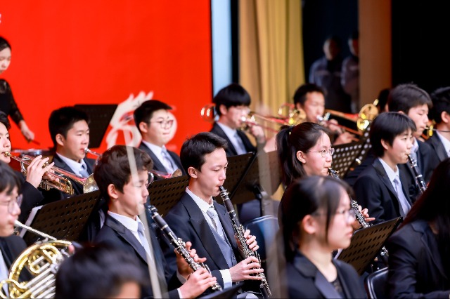 北京一零一中金帆交响乐团登台演奏,展示了学校的美育成果。学校供图