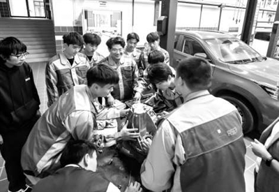 宜宾职业技术学院汽车与轨道交通学院学生在企业车间实训。资料图片