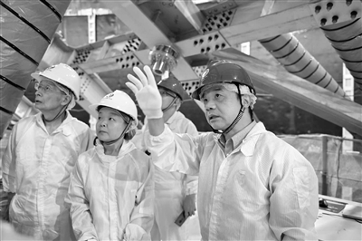 王贻芳院士(右一)在江门中微子实验建设现场。中国科学院高能物理研究所供图