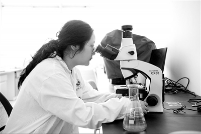 学生在教师赵璐的指导下进行微藻实验。 学校供图