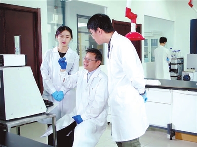 实验室主任张友明教授(中)在指导学生做实验。学校供图