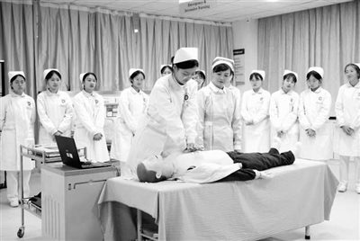 ①中南大学湘雅护理学院教授、博士生导师陈嘉在给学校护理“湘雅班”学生上实训课。