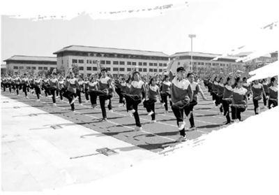 晋城一中学生正在做学校创编的大课间武术操。 学校供图