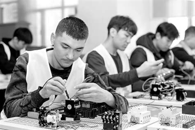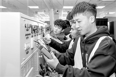 11月24日,新疆乌鲁木齐市天山区新华南路街道西河坝前街社区辖区西域职业培训学校,大学生们在进行电工作业实操。