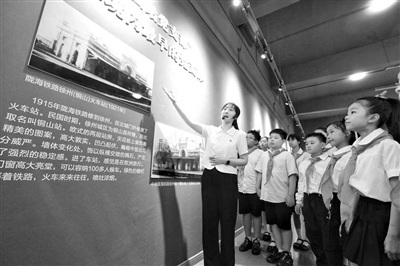 江苏省徐州市民主实验学校学生在“八号门事件”旧址,参观江苏第一个党支部史料展,学习党史知识。蒯创 摄