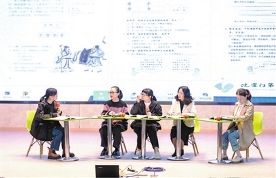 普陀区东港中学师生在科学课上讨论“创意板凳”设计方案。 学校供图