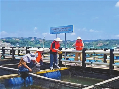 上海海洋大学学生在福建闽威花鲈科技小院开展实践。 学校供图