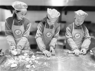 学生在劳动技能大赛上包包子。陈琪 摄