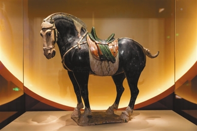 唐代三彩黑釉陶马