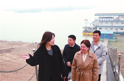 两会前,柳玲玲(前右)会同当地政协委员到洞庭湖考察。