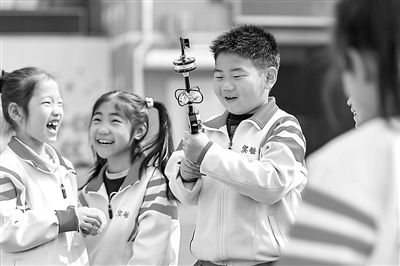 3月23日,天津市滨海新区塘沽实验小学的学生体验吹气测风速。当天是世界气象日,多地组织开展气象科普活动,普及气象知识。今年世界气象日的主题为“测今日气象,护明日家园”。杜鹏辉 摄(新华社发)