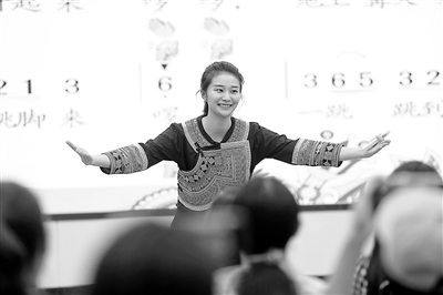 四川省教育科学研究院附属实验小学教师郭烜齐执教彝族民歌《一跳跳到天亮了》。
