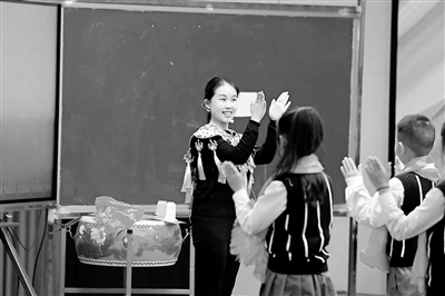 四川省汶川县第一小学校教师樊文执教羌族民歌《羊角花儿云里开》。 檀翔基 摄