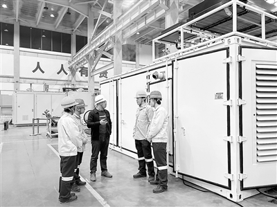 福大紫金氢能总经理(左三)和联培学生探讨氨氢燃料电池装备设计方案。 福州大学供图