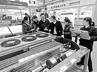 河南交通职院国家级教师创新团队赴宇通开展企业实践项目,共同研讨开发客车系列培训项目。学校供图