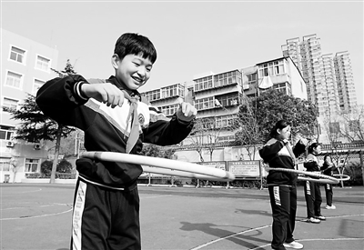 近日,河北省邯郸市邯山小学的学生在操场上玩转呼啦圈。周绍宗 摄