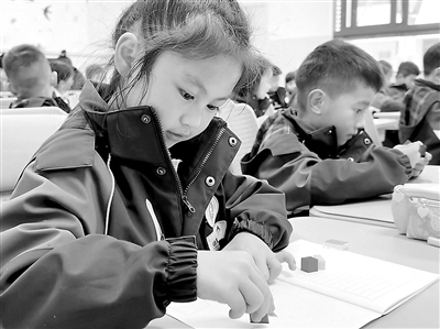 图为浙江省永康市金塔小学的学生利用学习工具认识“生活中的数学”。倪祎露 摄