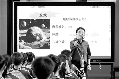 重庆市教研员陈燕浩在烟台市举行的小学道德与法治新教材培训暨单元整体教学改进研讨会上执教示范课。梁兆东 摄